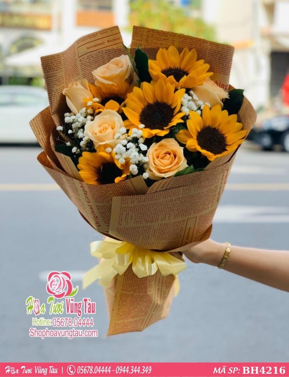 - Được kết hợp hoa hồng trứng gà+hướng dương và baby tone giấycổ điển giúp tổng thể bó hoa vô cùng mạnh mẻ-cá tính và sang trọng