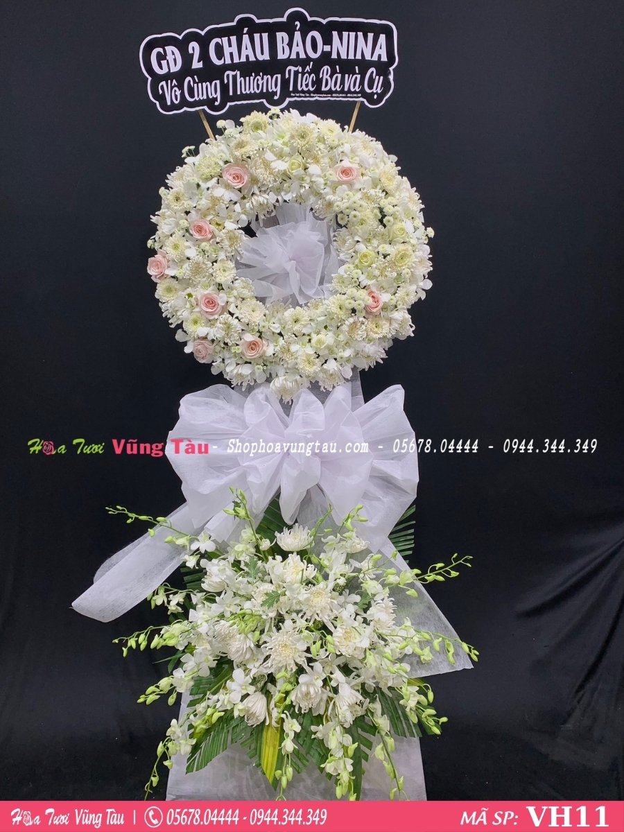 • Vòng hoa kính viếng mang ý nghĩa động viên, chia sẻ nổi buồn mất mát của gia chủ. Đồng thời là lòng kính trọng, tiếc thương cho người đã khuất.