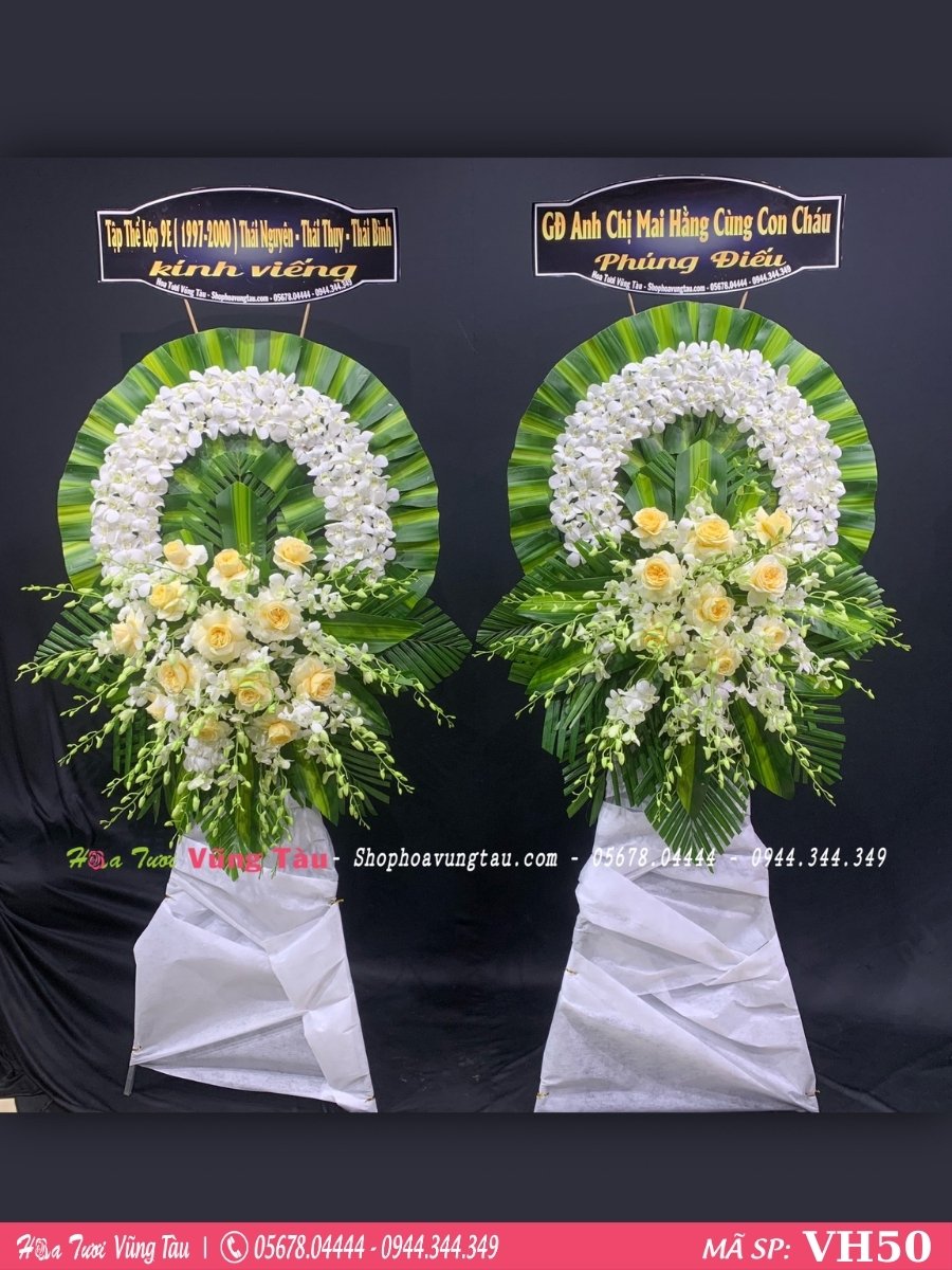 • Vòng hoa kính viếng mang ý nghĩa động viên, chia sẻ nổi buồn mất mát của gia chủ. Đồng thời là lòng kính trọng, tiếc thương cho người đã khuất.