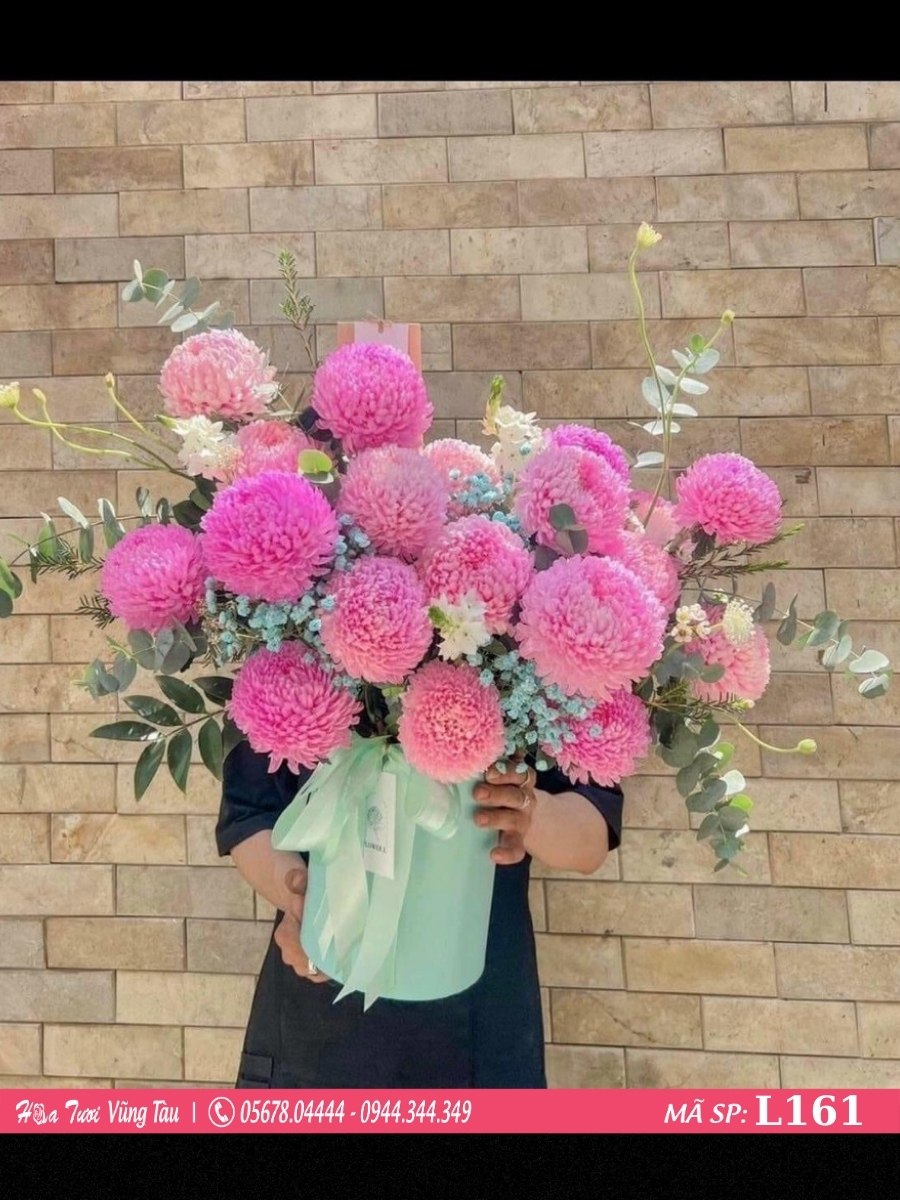 • Loại hoa: Hoa cúc mẫu đơn hồng, hoa thúy châu, lá bạc