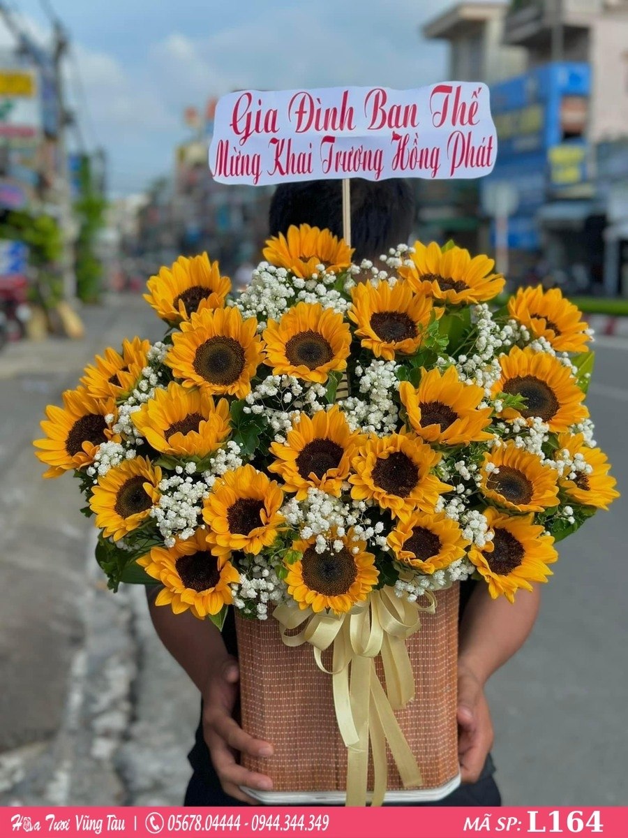 • Loại hoa: Hoa hướng dương, lá đuôi chồn, hoa baby trắng