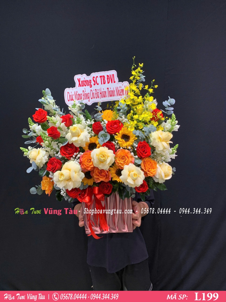 • Loại hoa: hoa hồng, hoa hướng dương, hoa lan vũ nữ, hoa sói, lá bạc, hoa baby trắng