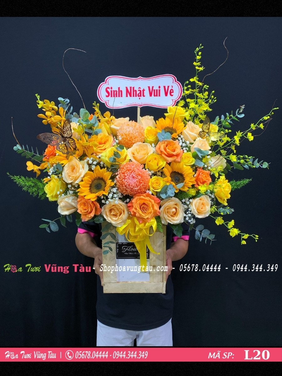 • Loại hoa: hồng mỡ gà, hồng vàng chùa, hướng dương, lan mokara, lan vũ nữ