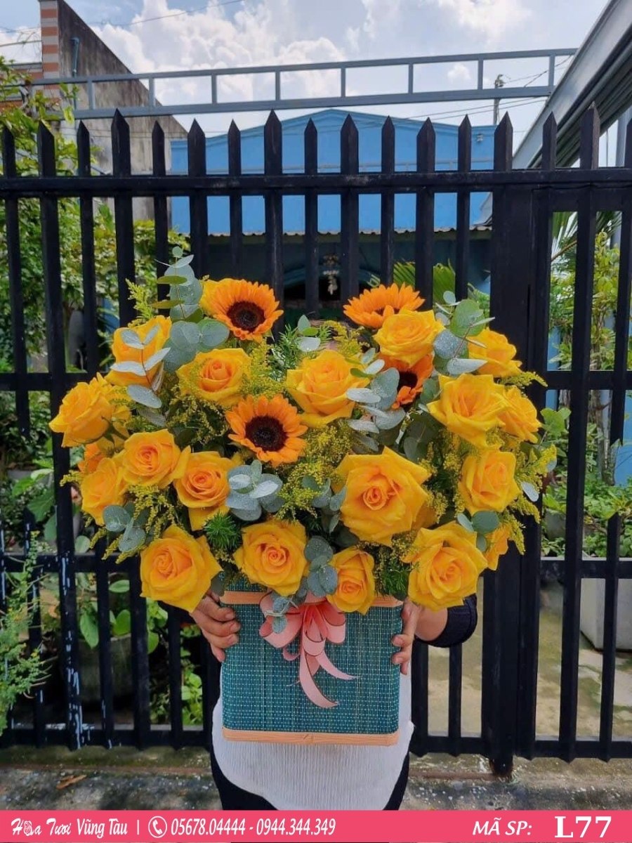 • Loại hoa: Hoa hướng dương, hoa hồng vàng, hoa vàng anh