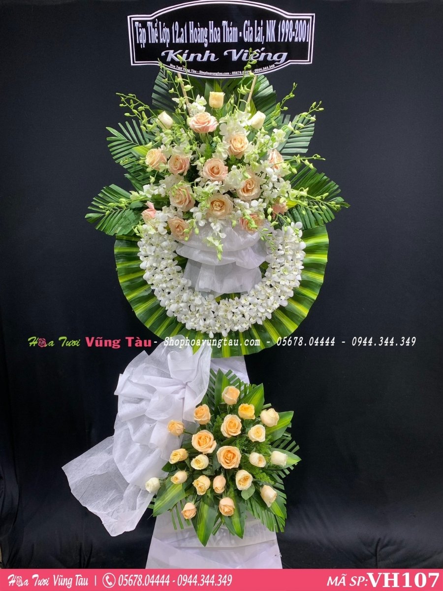 • Vòng hoa kính viếng mang ý nghĩa động viên, chia sẻ nổi buồn mất mát của gia chủ. Đồng thời là lòng kính trọng, tiếc thương cho người đã khuất.