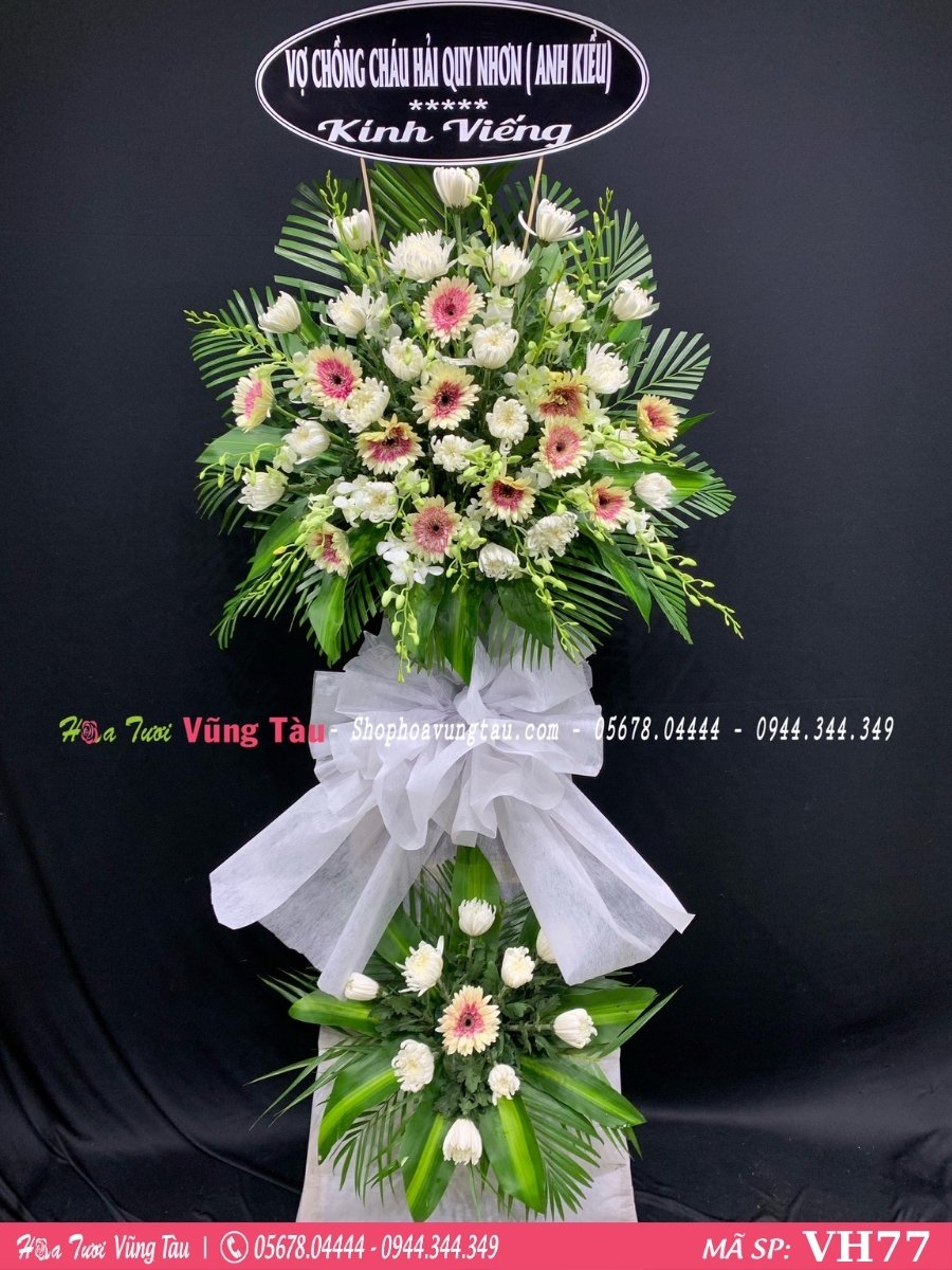 • Vòng hoa kính viếng mang ý nghĩa động viên, chia sẻ nổi buồn mất mát của gia chủ. Đồng thời là lòng kính trọng, tiếc thương cho người đã khuất.